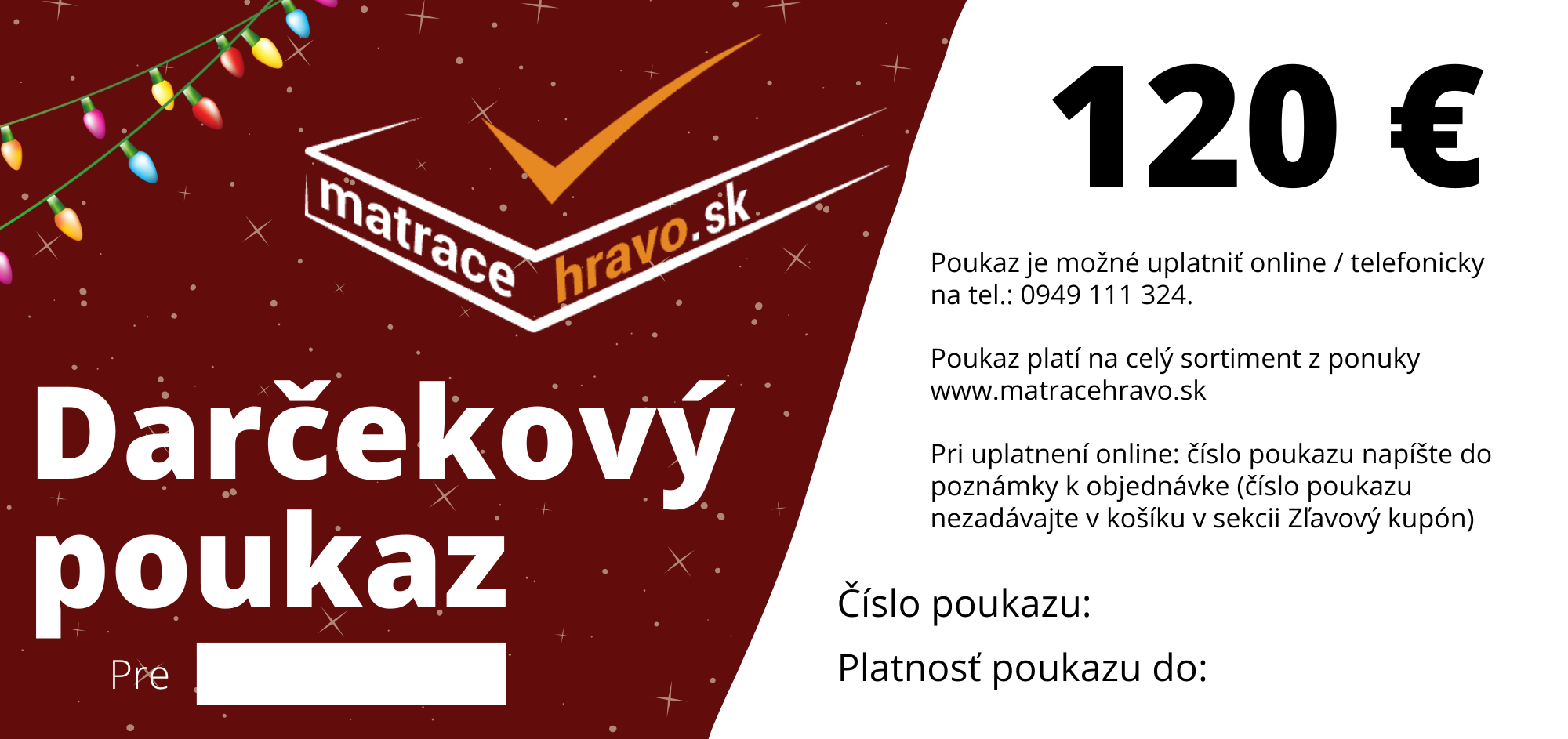 - Darčekový poukaz 120€ - na vytlačenie