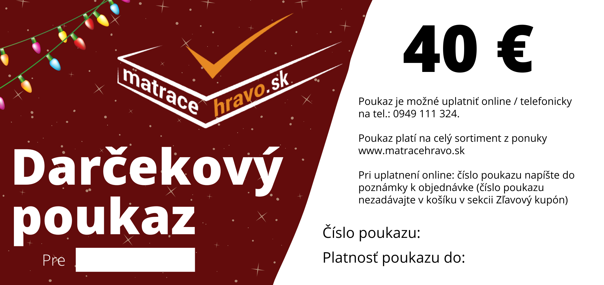 Darčekový poukaz v hodnote 40 €. Poukaz na vytlačenie vám bude odoslaný emailom po zaúčtovaní platby.